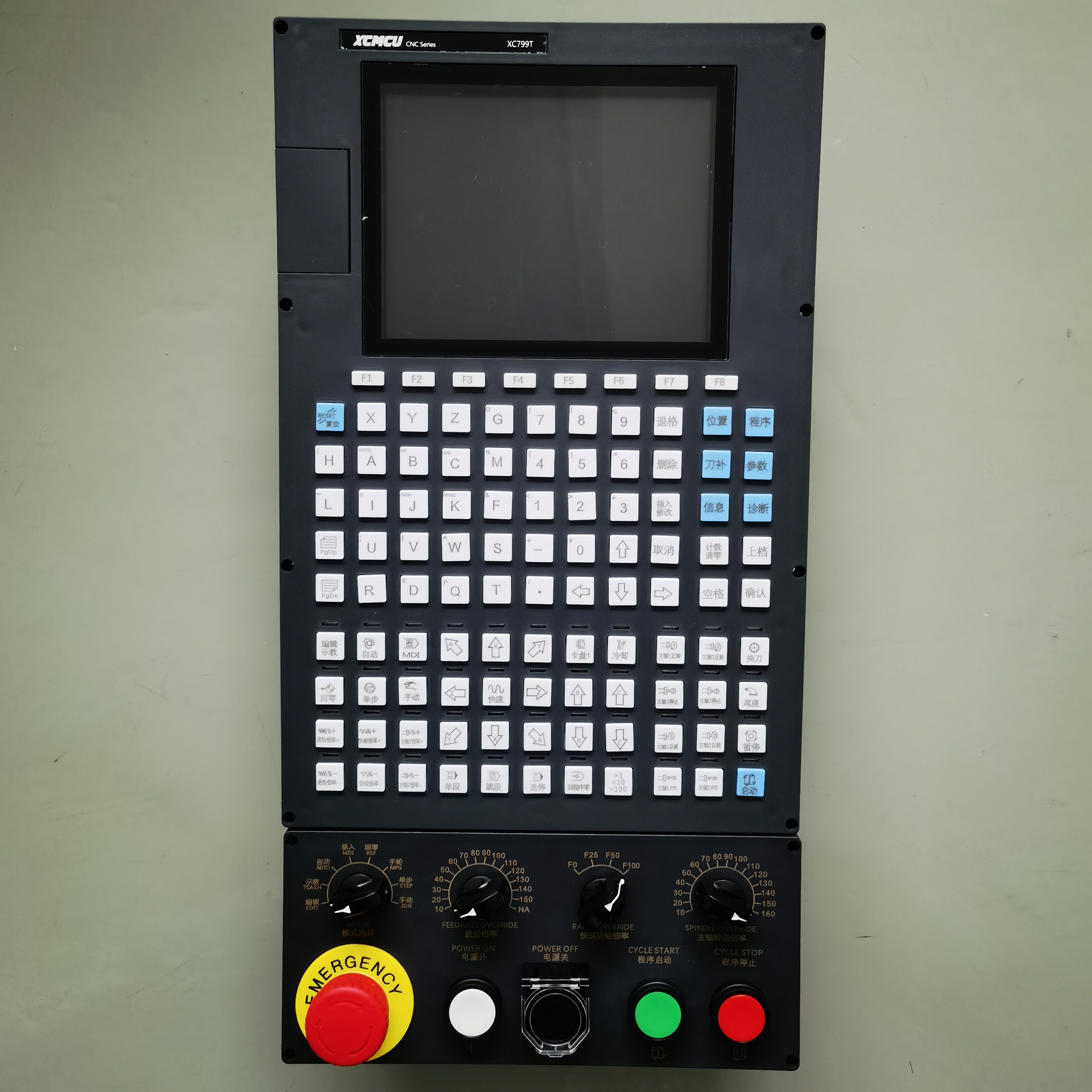 XC799T多功能车床数控系统为我公司研制的新一代数控系统。采用了32位微处理器,运用实时多任务控制技术和硬件插补技术,全联动,高速小线段前瞻算法。0.001mm插补精度,速度可达30米/分。